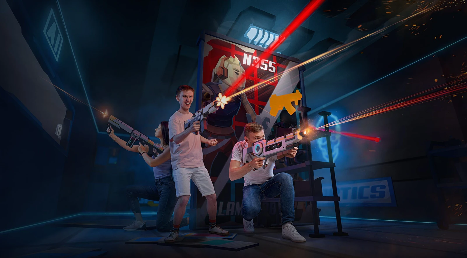 Играйте команда на команду в виртуальной реальности на арене 95 м2